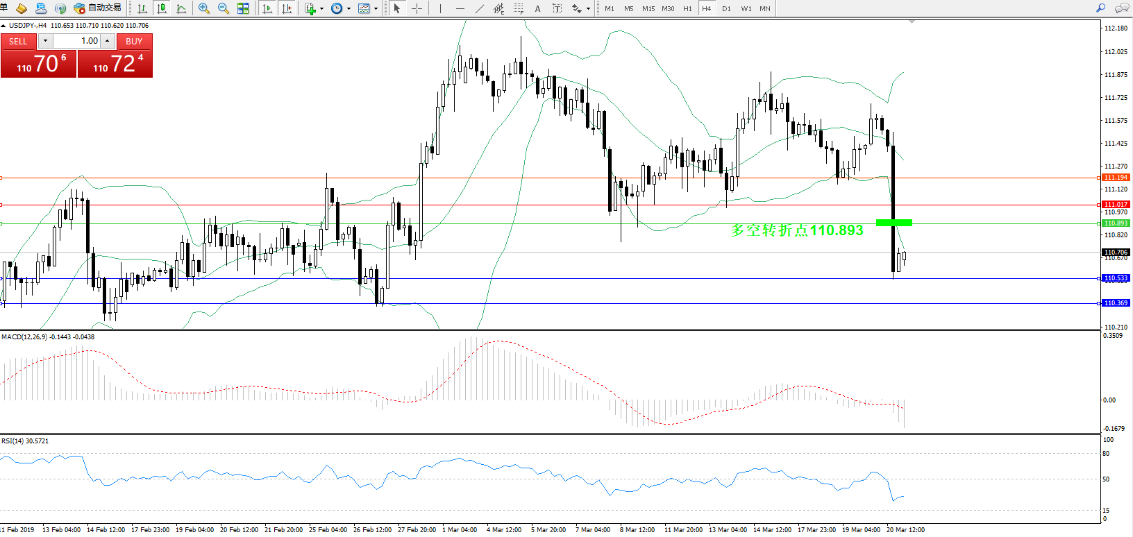 北京时间321日凌晨02:00,美联储利率决议按兵不动,下调利率“点阵图”、下修经济增长与通胀预期,宣布将逐步停止“缩表”,政策鸽派程度高于预期。消息公布后,美元下挫近70点,跌破96关口,刷新近三周低点至96.75,美联储FOMC声明显示,委员们一致同意此次利率决定。美联储预估显示,2019年预计加息一次,此前预估为加息两次。美联储点阵图维持2020年加息一次的预测。日圆110.586附近徘徊。