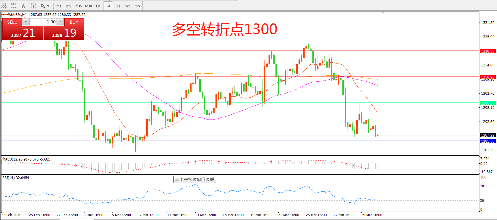 交易策略:在1300.00之下看跌,目标1285.00   1270.00