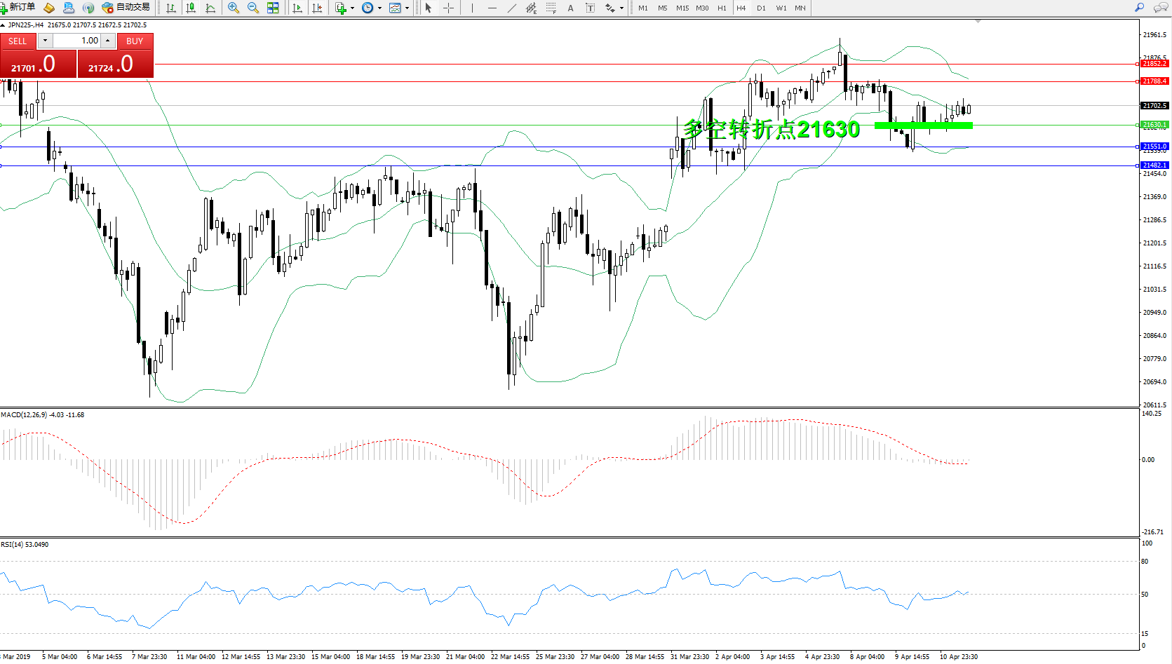日本股市日经指数周四在震荡交投中小幅上涨,日经225指数涨0.11%,收于21,711.38点,受股指期货相关买盘拉动,但涨幅因金融板块下跌而受限,此前美联储公布的会议记录强化了外界的鸽派政策预期。目前有许多重要事件,例如美中贸易问题、美欧贸易问题,假期间还可能传来特朗普具有挑衅意味的推文。财报季也来了,因此日经指数可能维持区间波动好一阵子,金融股下跌,此前美国公债收益率下滑,因美国通胀数据温和,强化美联储将维持利率不变,甚至在年底前降息一次的预期。