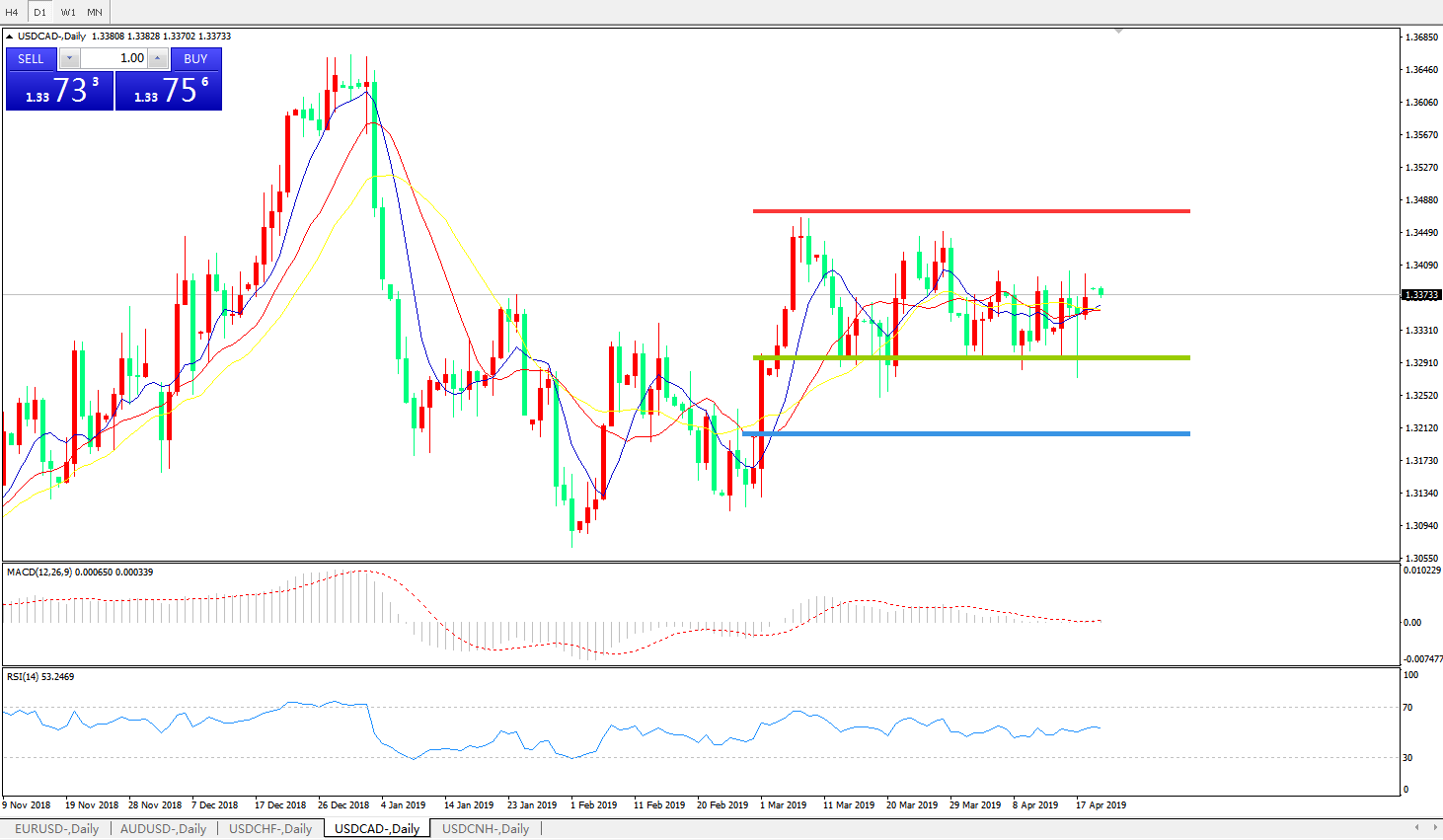 美元兑加元USDCAD 日线图: