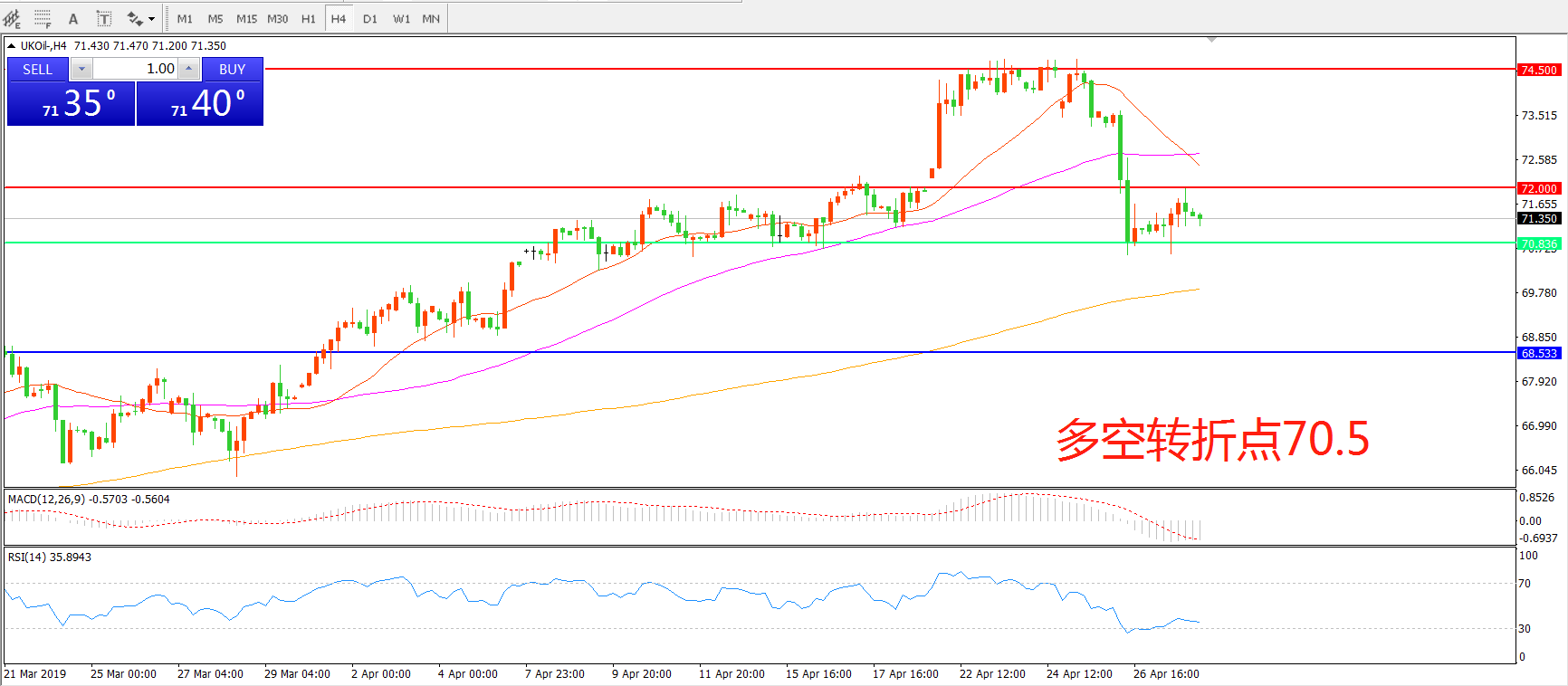 交易策略:在70.50   之上看涨,目标72.00    74.50