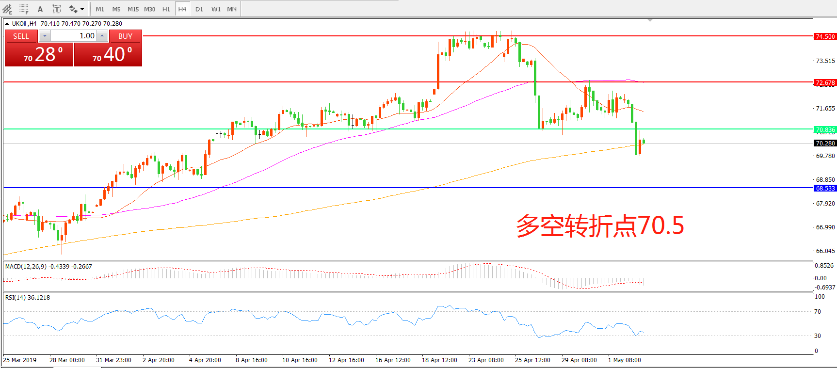 交易策略:在70.50之下看跌,目标68.50    66.00