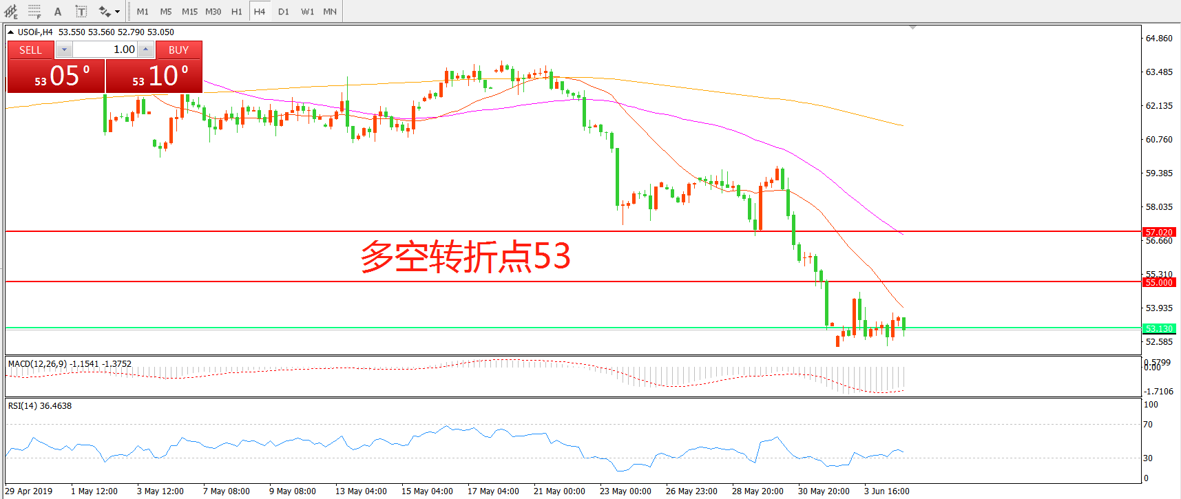 交易策略:在53.00之下看跌,目标50.00 46.00
