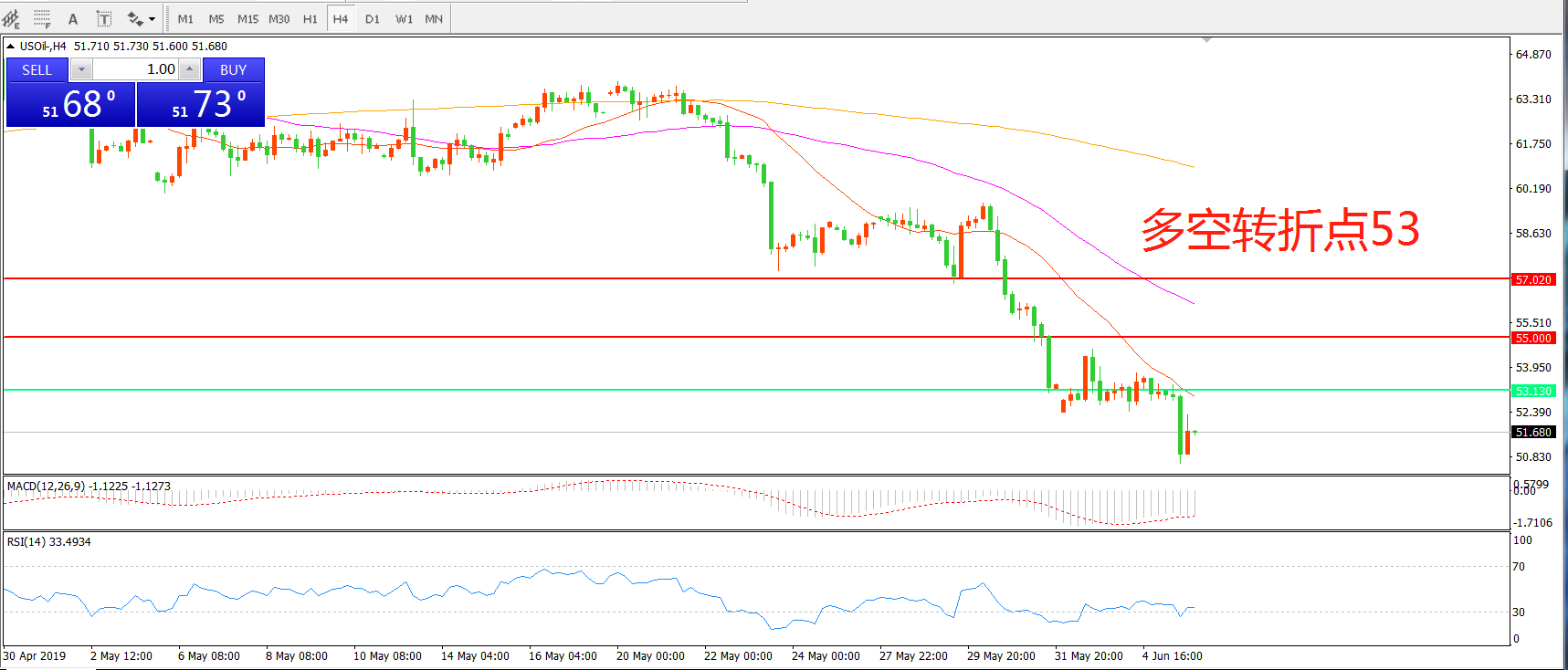 交易策略:在53.00之下看跌,目标50.00    46.00