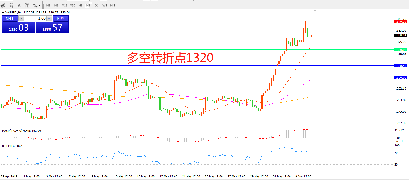 交易策略:在1320.00之上看涨,目标1340.00   1354.00