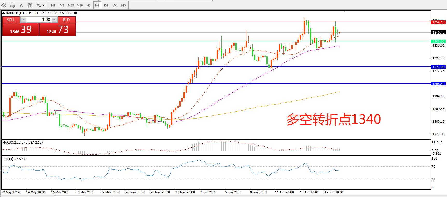 交易策略:在1340.00之上看涨,目标1354.00 1373.00