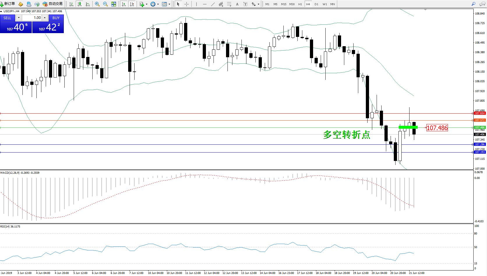 交易策略:107.486下方看跌,目标107.286107.193