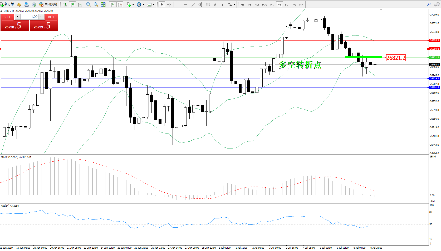 道琼斯指数78日(周一)收盘下跌116.00点,跌幅0.43%,报26806.14点。上周五(5日)公布的强劲6月非农就业数据不仅降低了市场对于美联储降息的预期,同时还为目前高涨的美股势头破了点冷水。市场预期美联储本月将降息25个基点,此前更是预期会降息50个基点,导致美国国债收益率周一度跌至2016年以来最低水平。