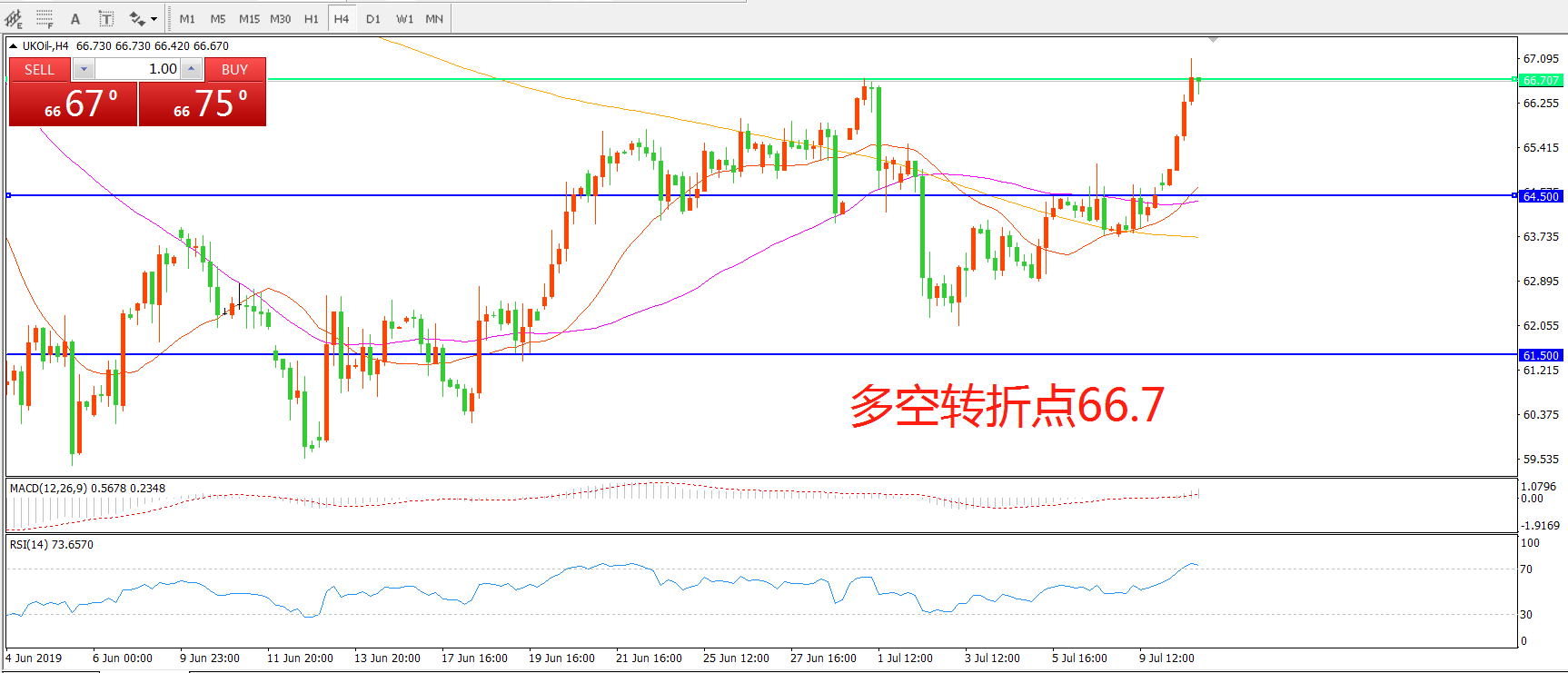 交易策略:在66.70之上看涨,目标70.00    73.00