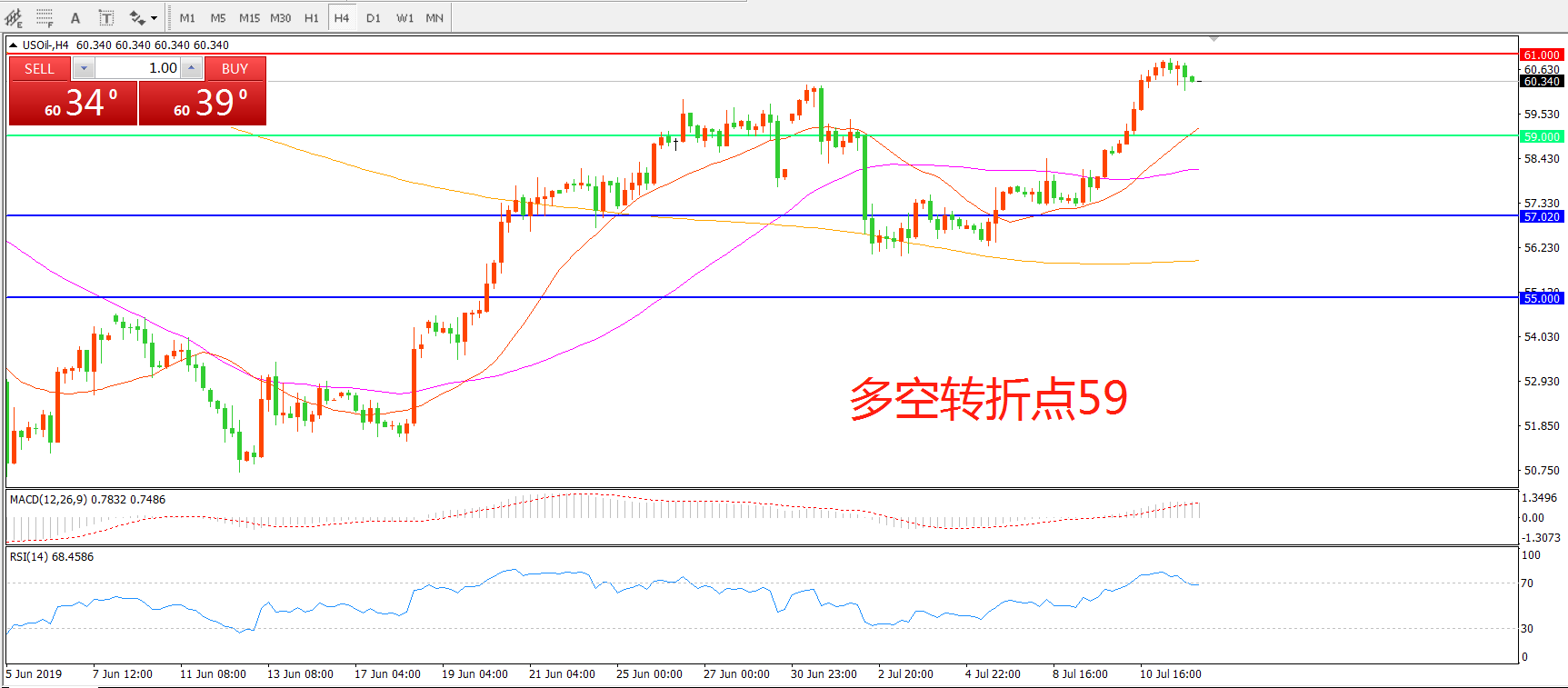 多空转折点:57.00