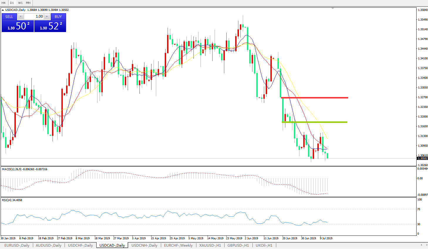美元兑加元USDCAD    日线图:
