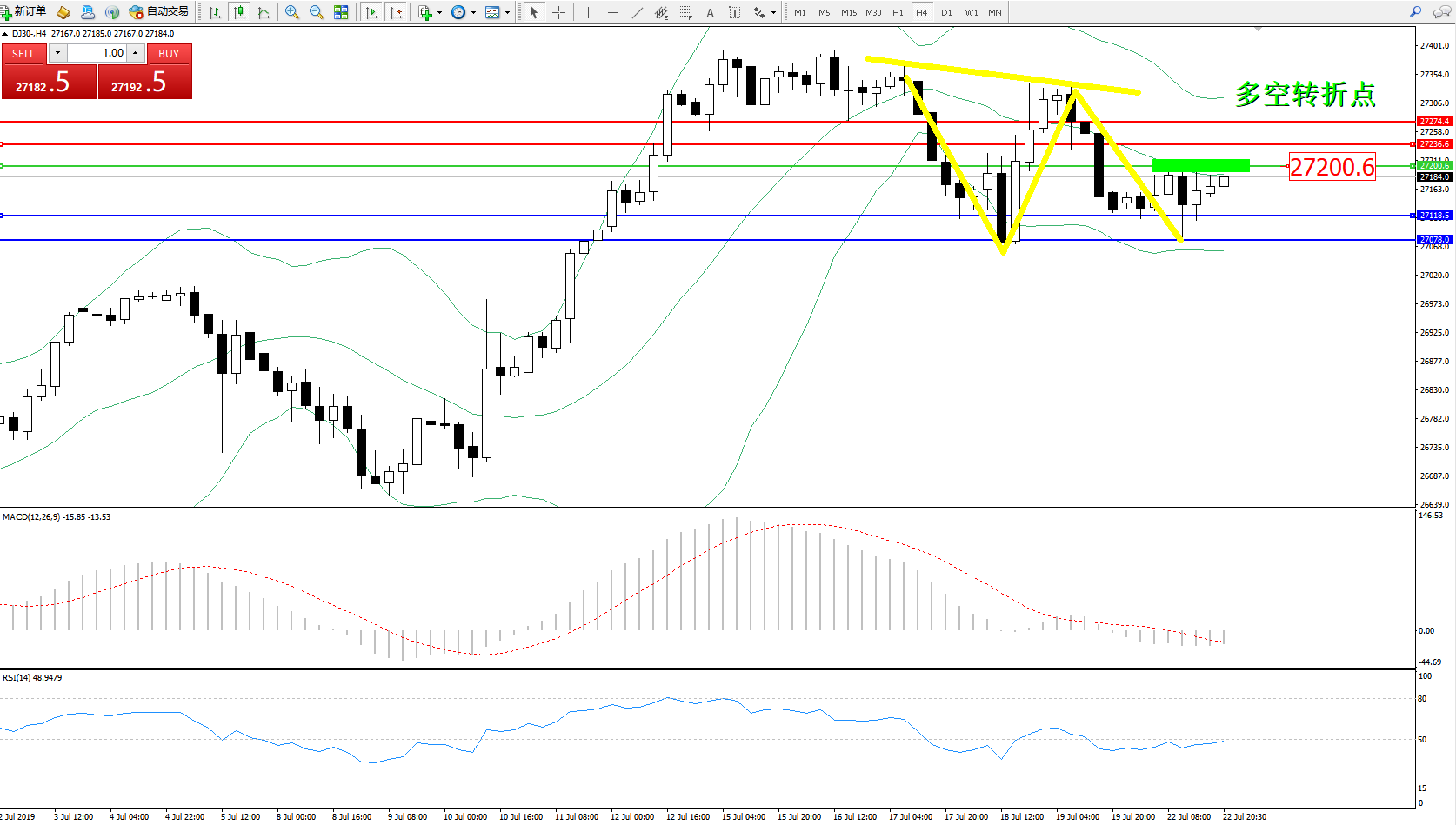 道琼斯指数722日(周一)收盘上涨17.70点,涨幅0.07%,报27171.90点。鉴于目前的贸易疑虑有所降温,股票市场看起来仍然很有吸引力,因为美国地质勘探局国债收益率下降,稳定的公司债券市场增强了对企业盈利前景的信心。美国国会和白宫将就上调债务上限一事达成协议,根据该协议,上调后的债务上限有效期将持续至20217月。目前协商的关键在于,是否将特朗普政府减少1500亿美元开支加入协议中。如果预算谈判无法在期限内结束,议员们可能会决定延长债务上限至10月,这虽然会避免政府违约,但同时也会增加市场不确定性。