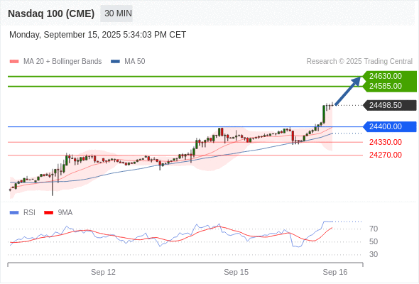 在 24400.00 之上,看涨,目标价位为 24585.00 ,然后为 24630.00 。