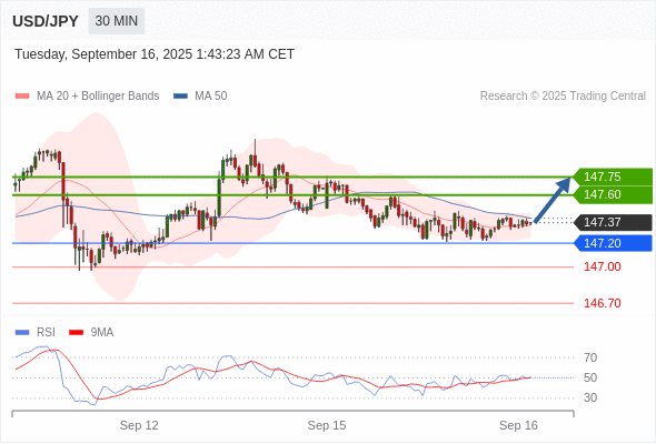 在 147.20 之上,看涨,目标价位为 147.60 ,然后为 147.75 。