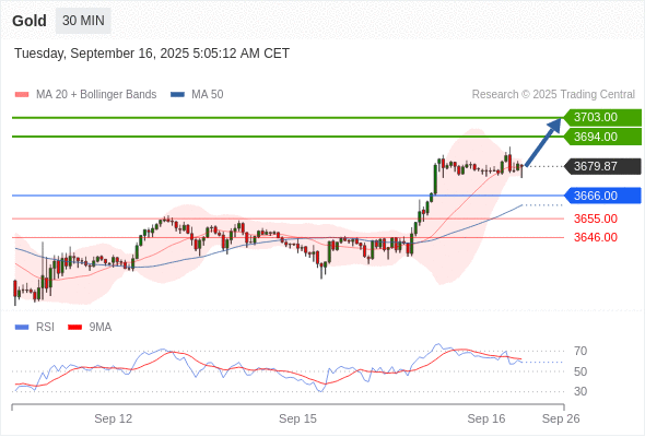 在 3666.00 之上,看涨,目标价位为 3694.00 ,然后为 3703.00 。
