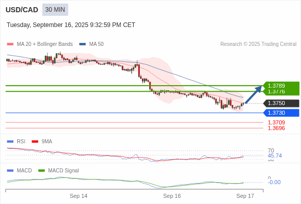 替代方案: 在1.3730以下,期待1.3709和1.3696。