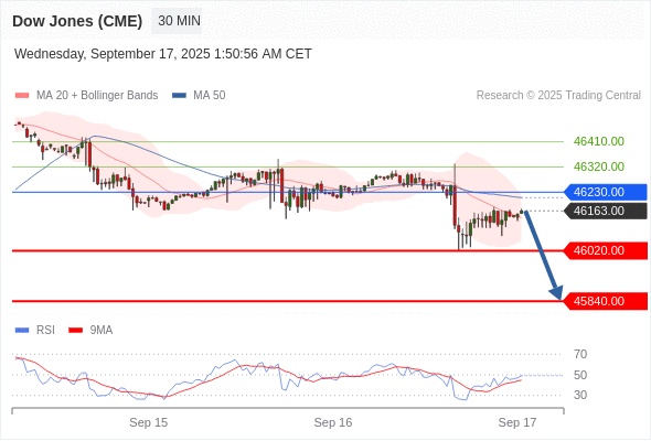 在 46230.00 之下,看跌,目标价位为 46020.00 ,然后为 45840.00 。
