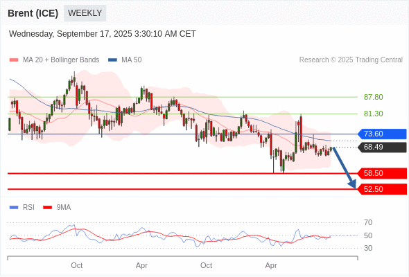交易策略: 在 73.60 之下,看跌,目标价位为 58.50 ,然后为 52.50 。
