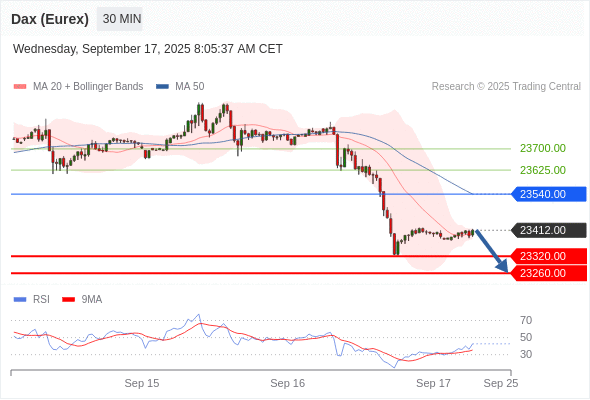 在 23540.00 之下,看跌,目标价位为 23320.00 ,然后为 23260.00 。