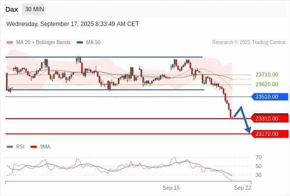 在 23510.00 之下,看跌,目标价位为 23310.00 ,然后为 23170.00 。