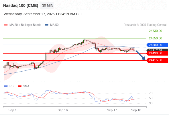 在 24580.00 之下,看跌,目标价位为 24490.00 ,然后为 24415.00 。