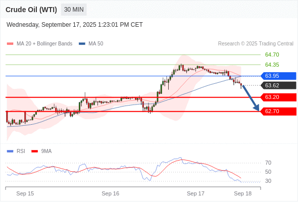 在 63.95 之下,看跌,目标价位为 63.20 ,然后为 62.70 。