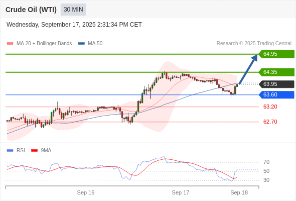 在 63.60 之上,看涨,目标价位为 64.35 ,然后为 64.70 。