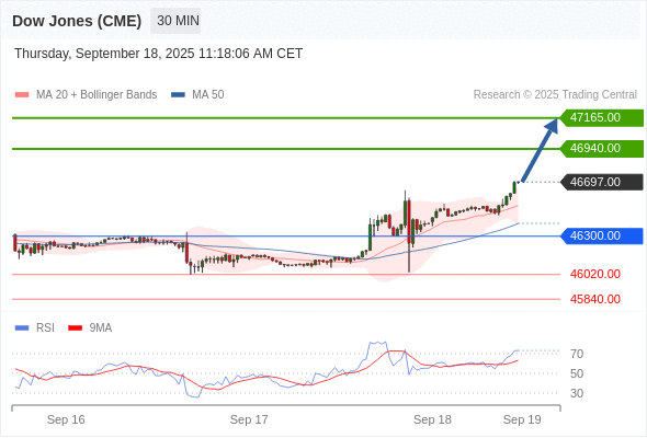 在 46300.00 之上,看涨,目标价位为 46940.00 ,然后为 47165.00 。