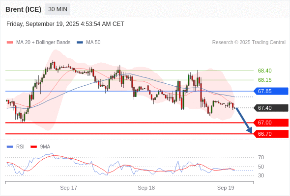 在 67.85 之下,看跌,目标价位为 67.00 ,然后为 66.70 。