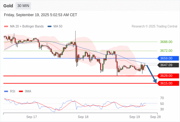 黄金现货 当日内: 短期关键阻力位在3659.00。