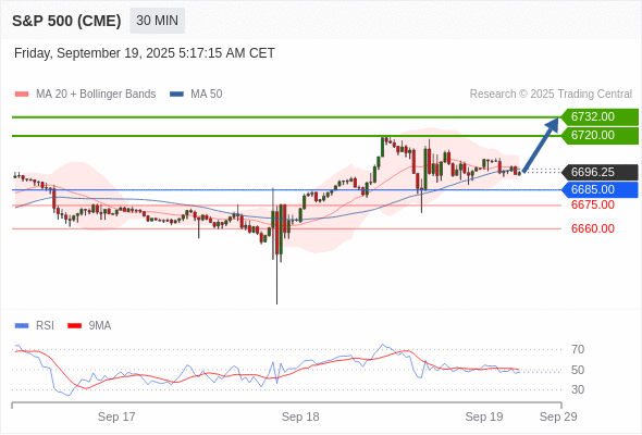 交易策略: 在 6685.00 之上,看涨,目标价位为 6720.00 ,然后为 6732.00 。