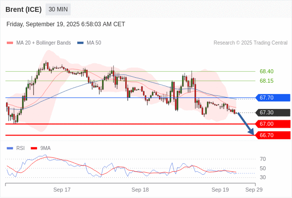 交易策略: 在 67.70 之下,看跌,目标价位为 67.00 ,然后为 66.70 。