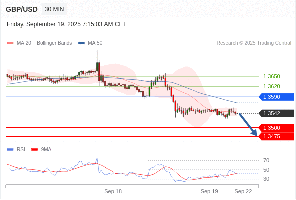 在 1.3590 之下,看跌,目标价位为 1.3500 ,然后为 1.3475 。
