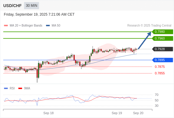 在 0.7895 之上,看涨,目标价位为 0.7960 ,然后为 0.7980 。