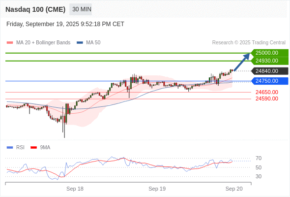 在 24750.00 之上,看涨,目标价位为 24930.00 ,然后为 25000.00 。