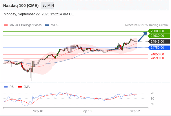 交易策略: 在 24750.00 之上,看涨,目标价位为 24930.00 ,然后为 25000.00 。
