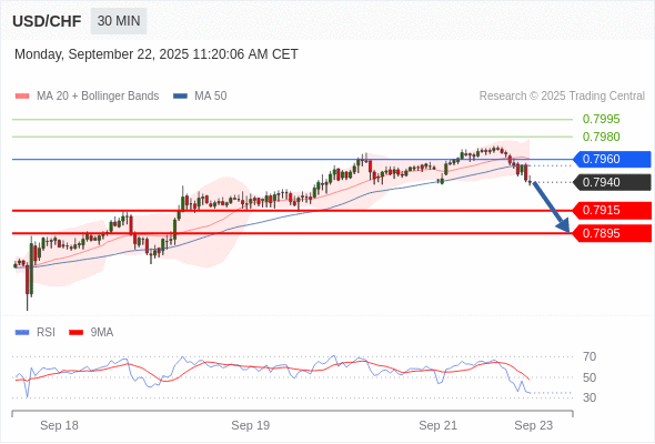 交易策略: 在 0.7960 之下,看跌,目标价位为 0.7915 ,然后为 0.7895 。