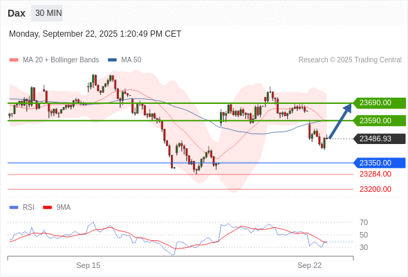 交易策略: 在 23350.00 之上,看涨,目标价位为 23590.00 ,然后为 23690.00 。