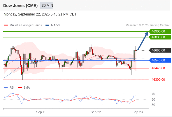 在 46540.00 之上,看涨,目标价位为 46830.00 ,然后为 46900.00 。