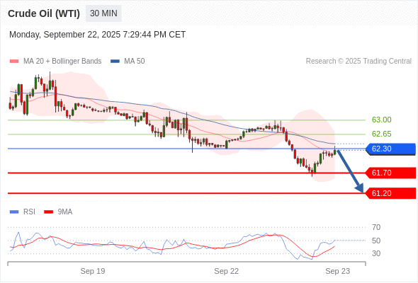 在 62.30 之下,看跌,目标价位为 61.70 ,然后为 61.20 。