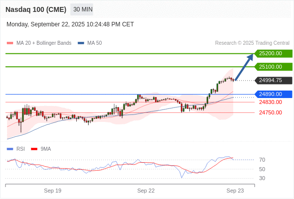 在 24890.00 之上,看涨,目标价位为 25000.00 ,然后为 25100.00 。