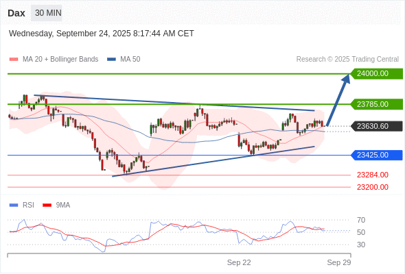 德国DAX指数 当日内: 在23425.00之上,看涨。
