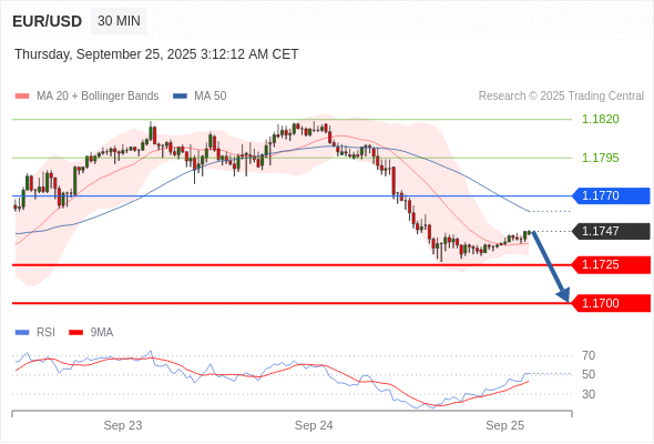 交易策略: 在 1.1770 之下,看跌,目标价位为 1.1725 ,然后为 1.1700 。