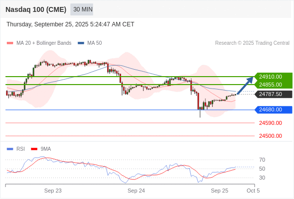在 24680.00 之上,看涨,目标价位为 24855.00 ,然后为 24910.00 。
