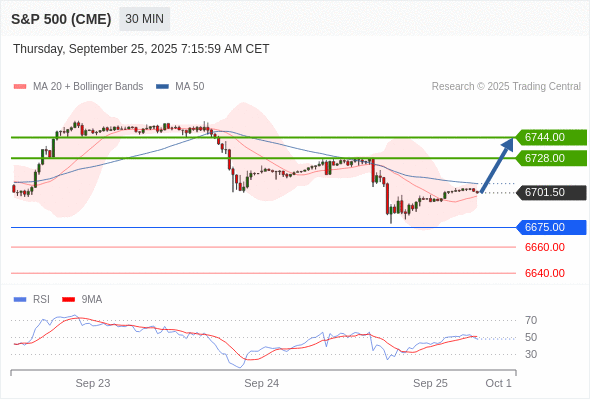 交易策略: 在 6675.00 之上,看涨,目标价位为 6728.00 ,然后为 6744.00 。