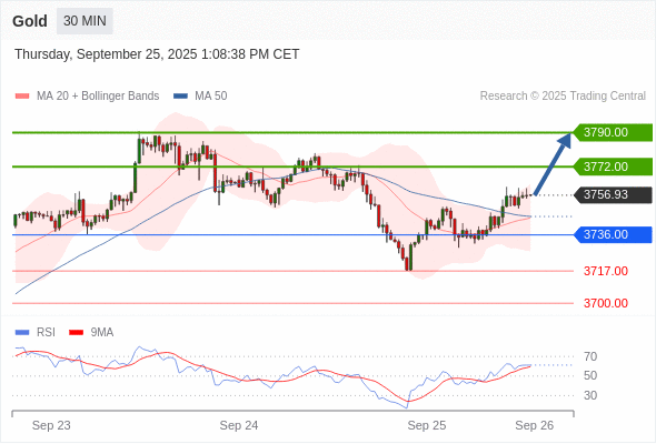 交易策略: 在 3736.00 之上,看涨,目标价位为 3772.00 ,然后为 3790.00 。