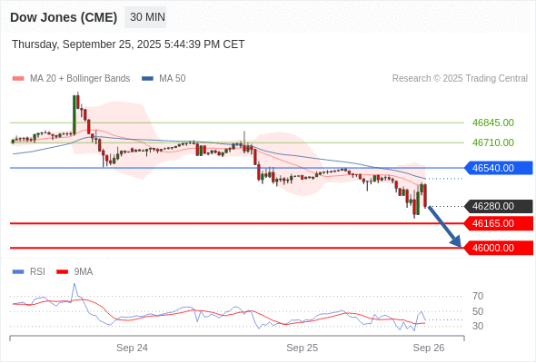 在 46540.00 之下,看跌,目标价位为 46165.00 ,然后为 46000.00 。