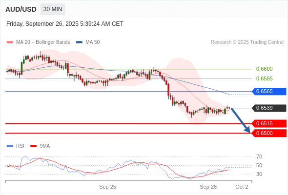 交易策略: 在 0.6565 之下,看跌,目标价位为 0.6515 ,然后为 0.6500 。