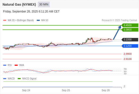 Natural Gas (NYMEX) (NOV5) 当日内: 看涨,当 3.1200 为支撑位,目标定在3.4500。