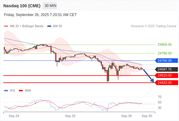 在 24700.00 之下,看跌,目标价位为 24510.00 ,然后为 24420.00 。